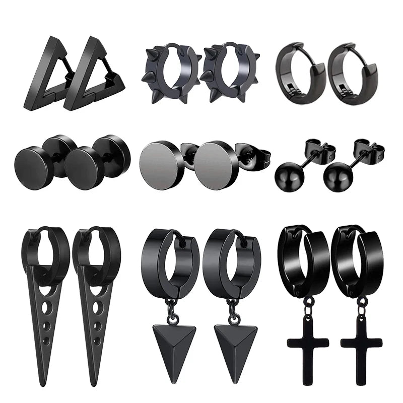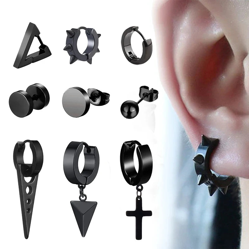 Black-Color Multiple Styles Stainless Steel Stud Earrings For Men