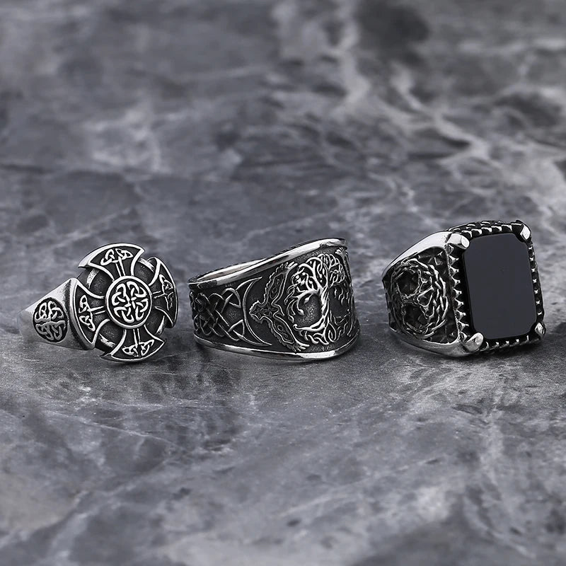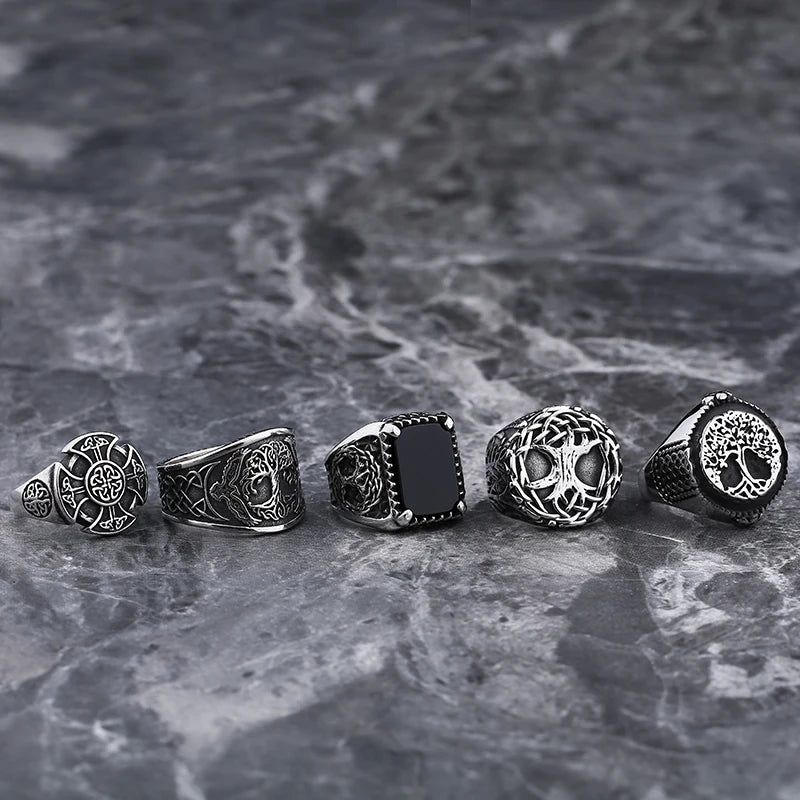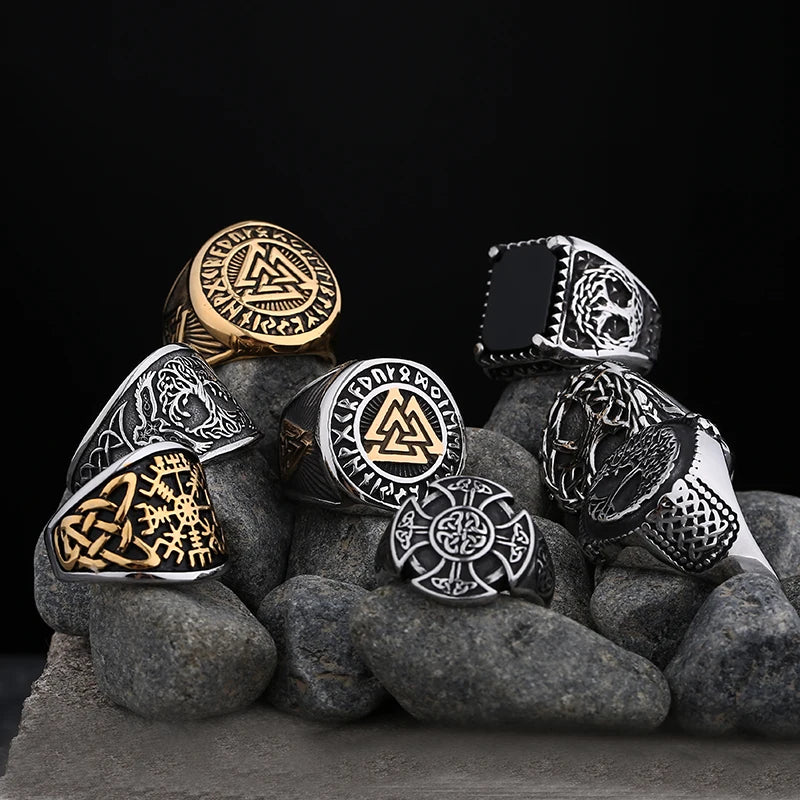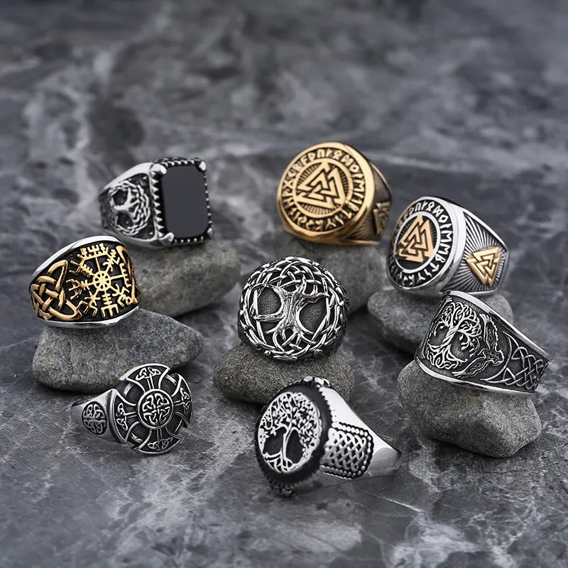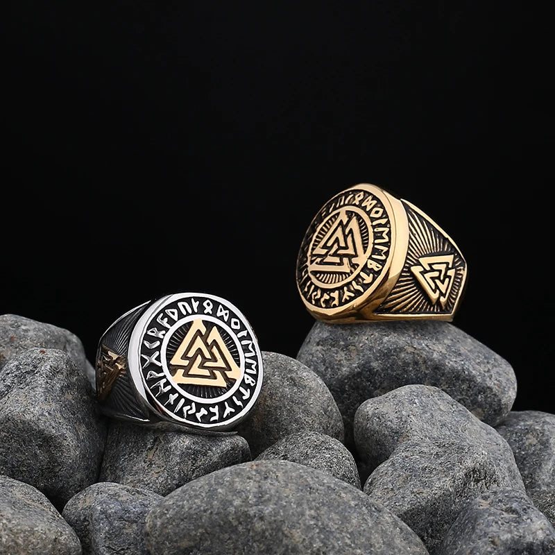 New Mens Viking Gothic Stainless Steel Odin Runes Ring