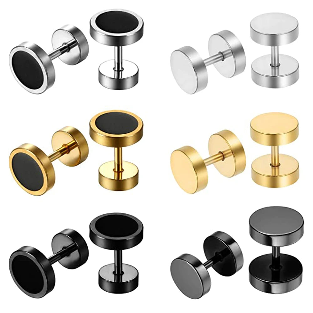 6-12 Pcs Mens Stud Earring Set Stainless Steel Ear Stud Screw Back