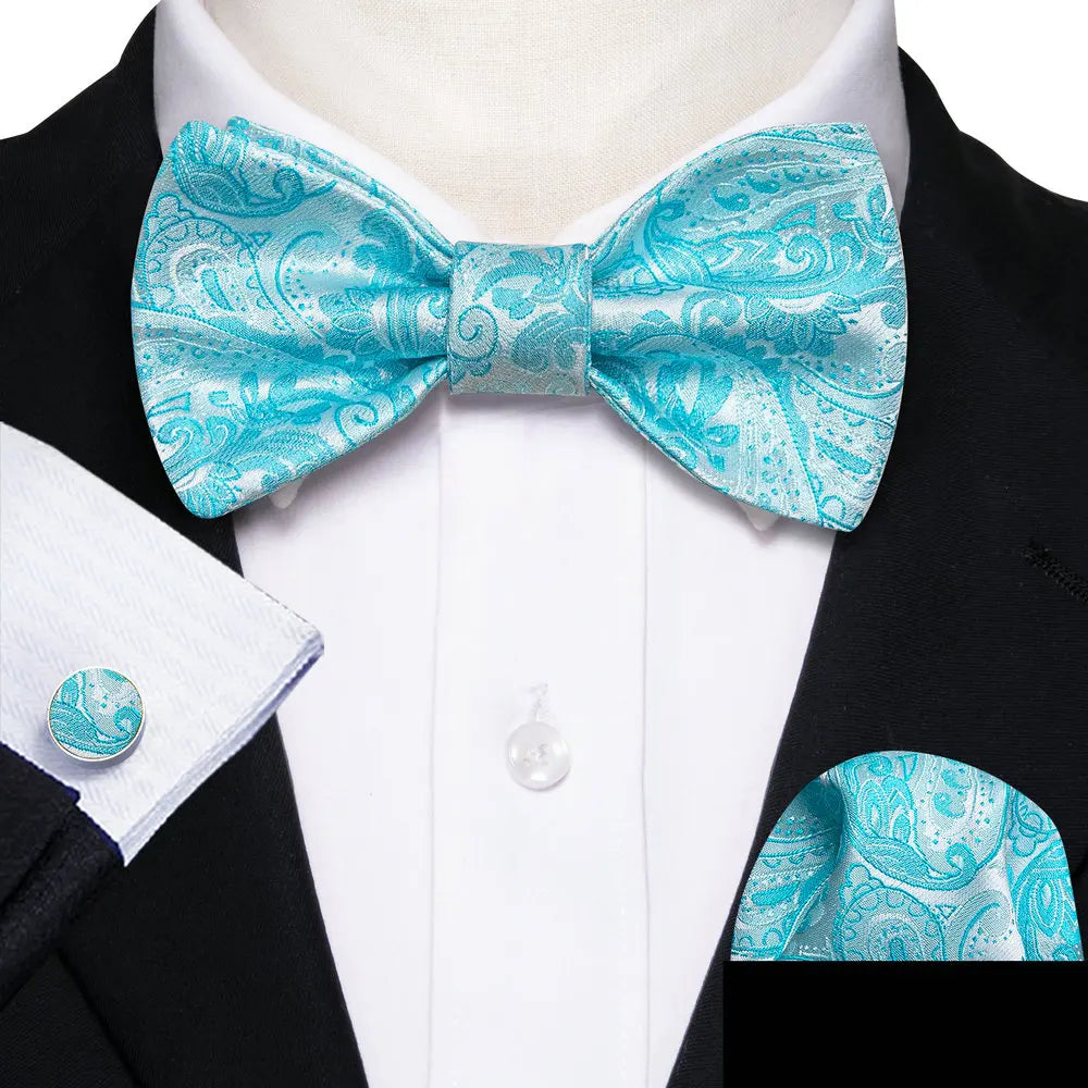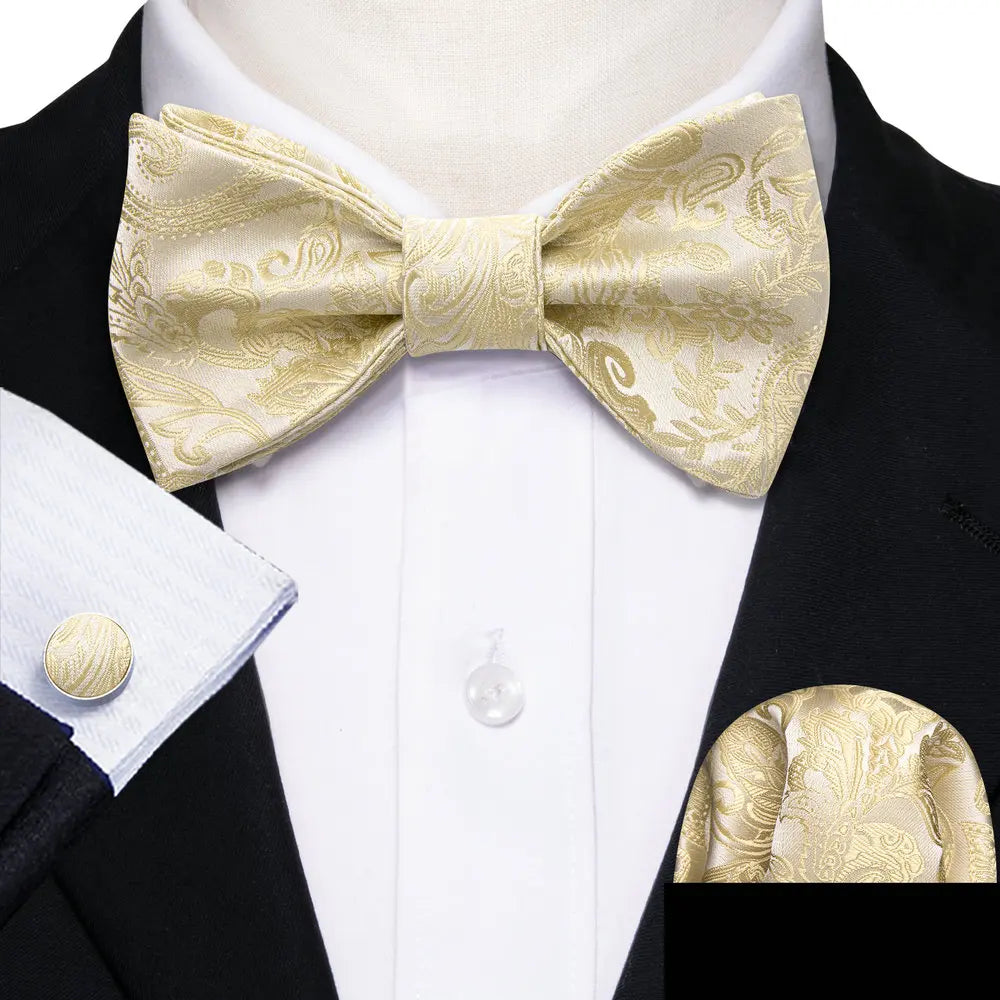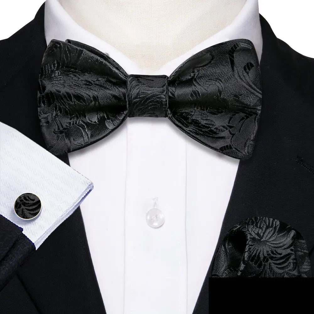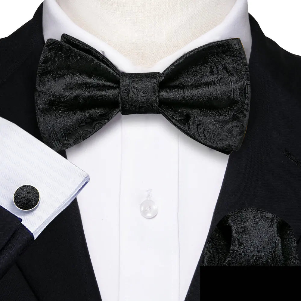 Men's Silk 3 Peice Jacquard Bow Tie Hanky & Cufflinks