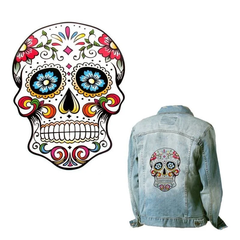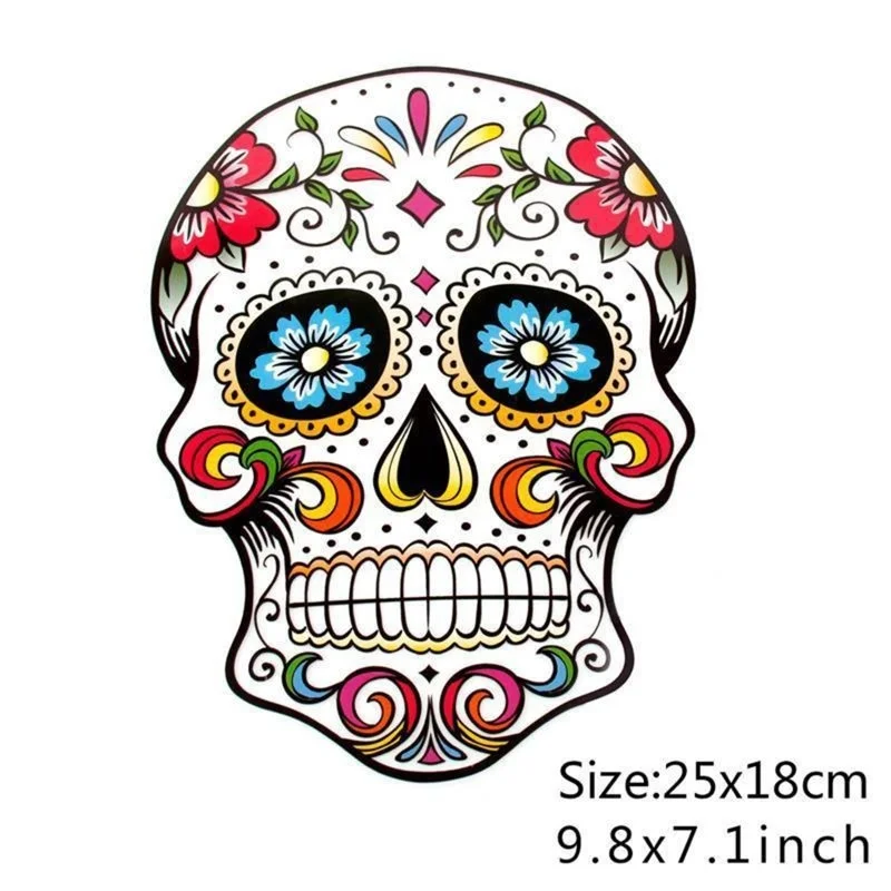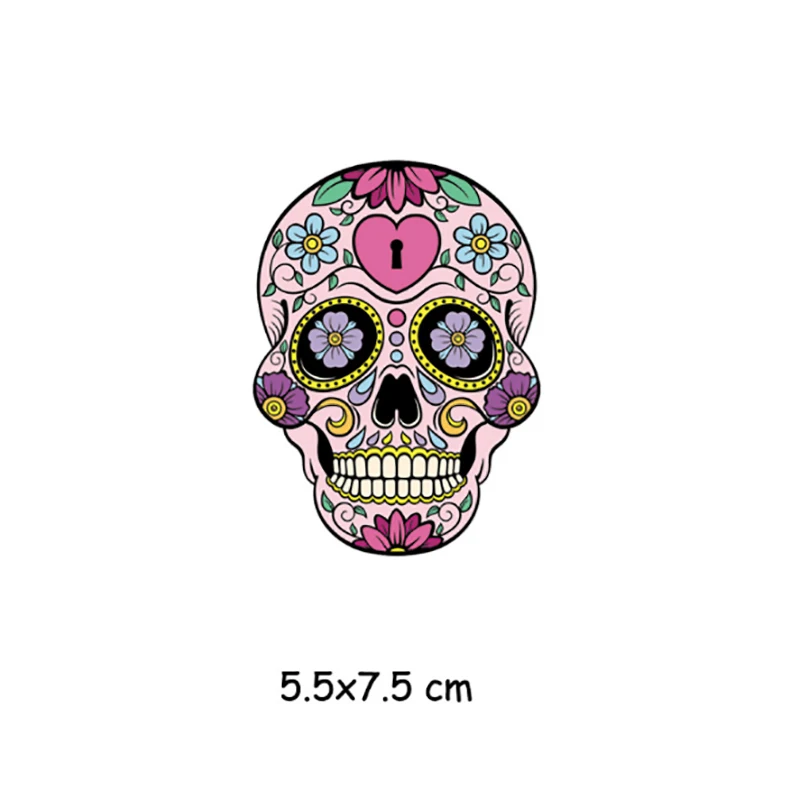Skull Heat Transfer Patch Mexican Day of The Dead