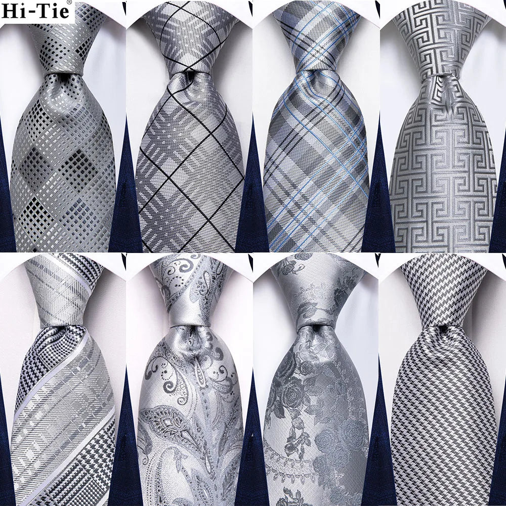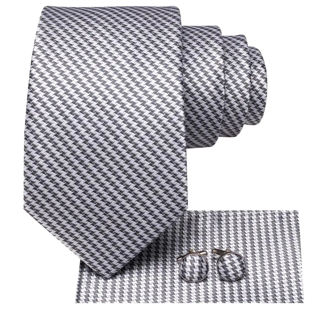 3 Piece Silver Grey Necktie Hanky & Cufflinks