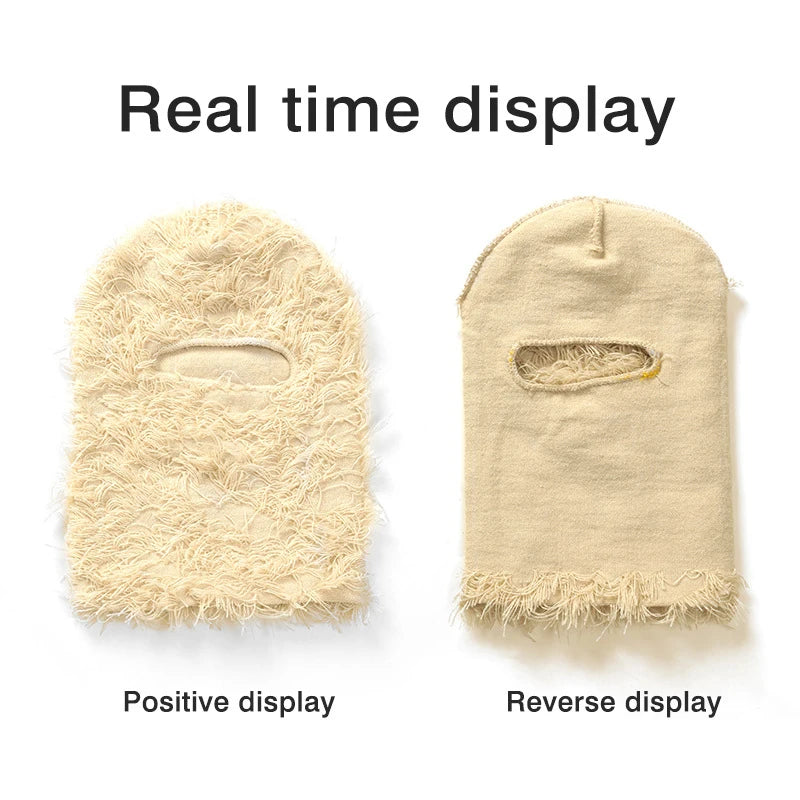 Distressed Knitted Full Face Camouflage Fuzzy Ski Mask