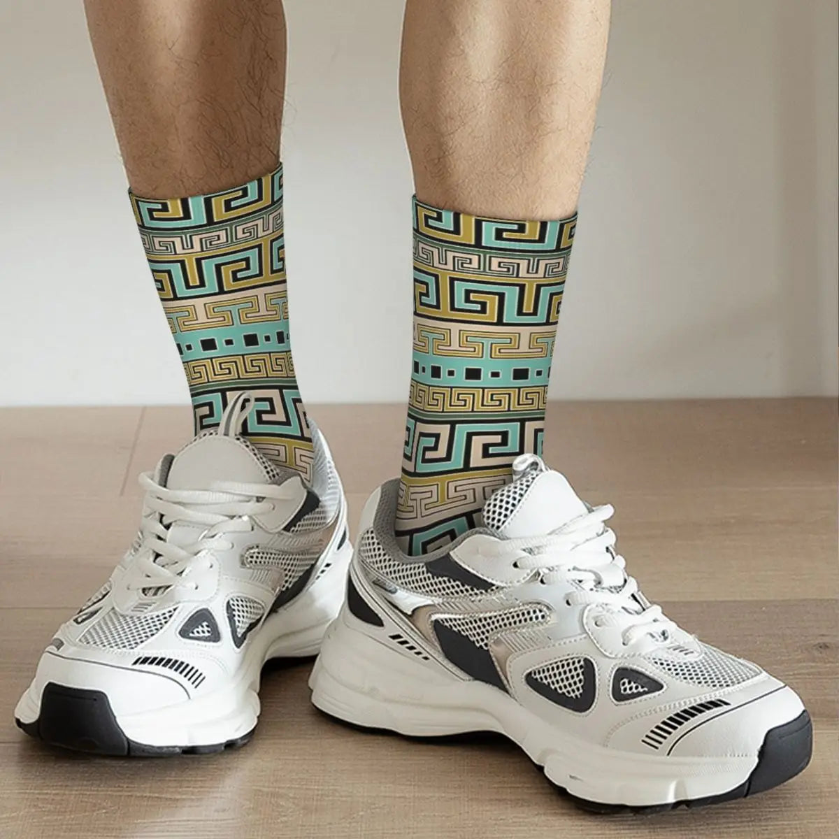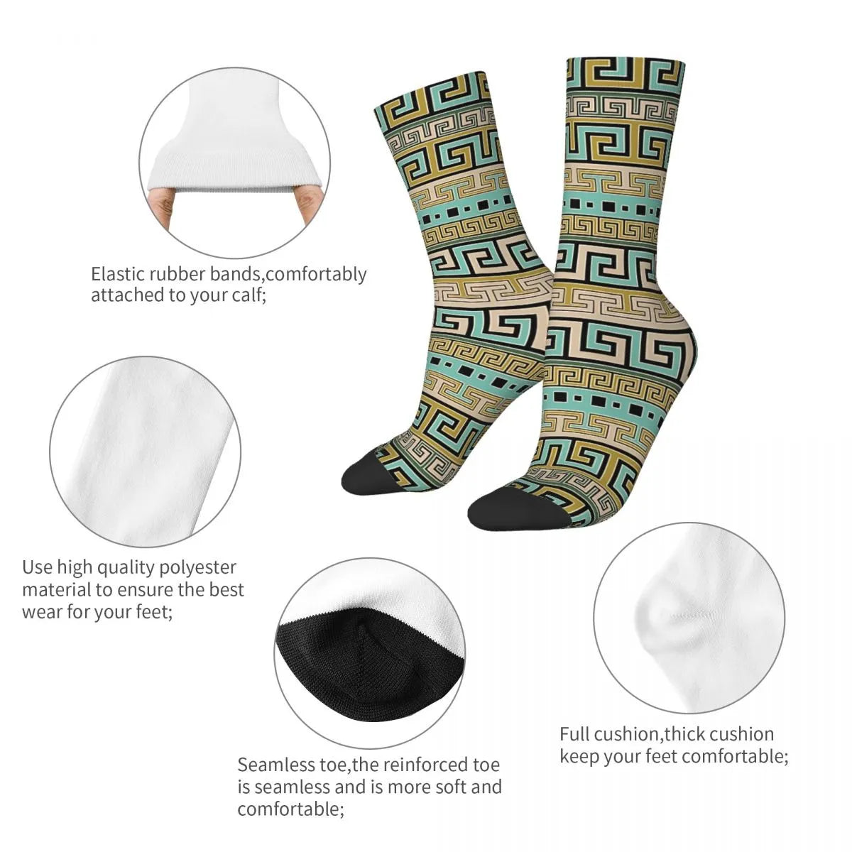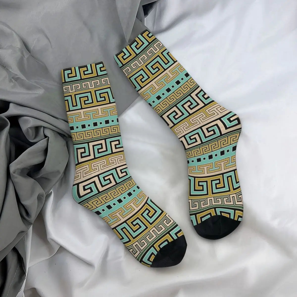 Men's Retro Meander Pattern Greek Key Ornament Seamless Sock