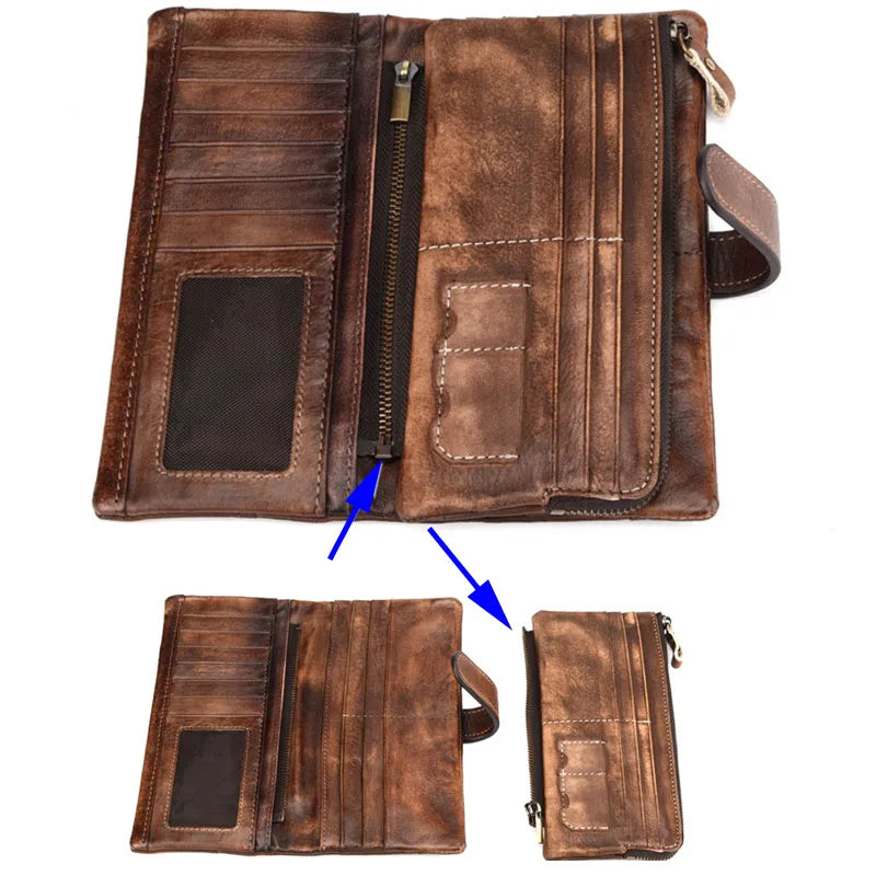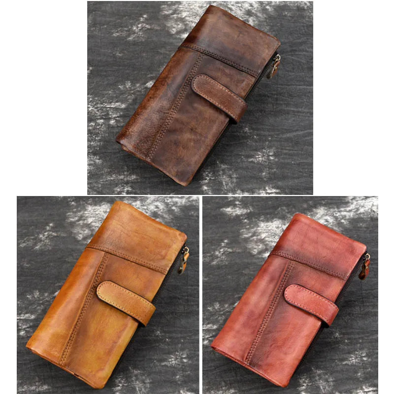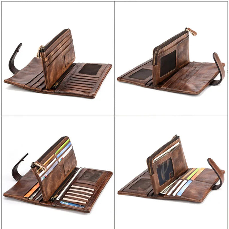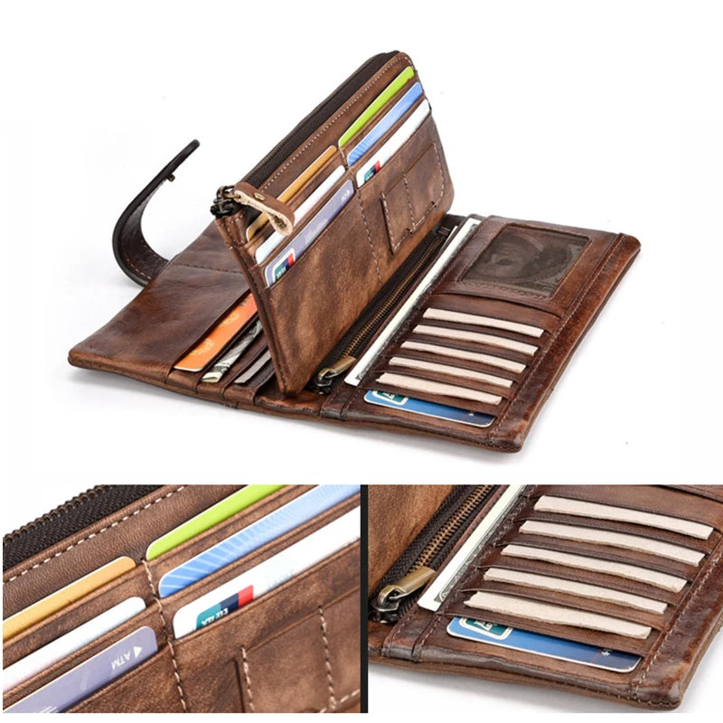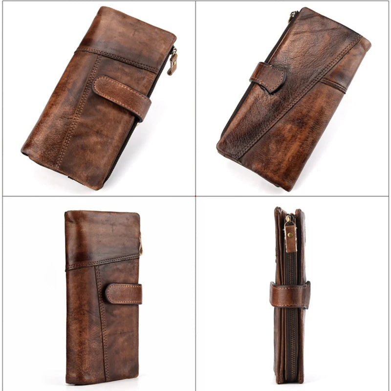 Men's Vintage Genuine Leather Long Wallet RFID Blocking Credit Card