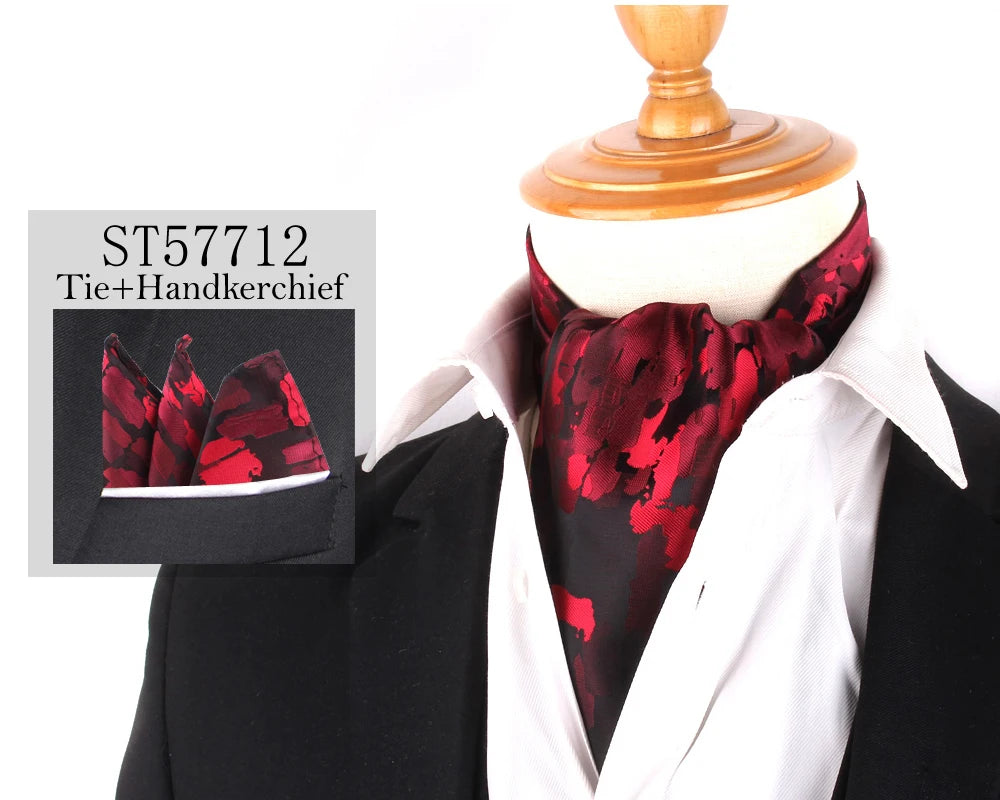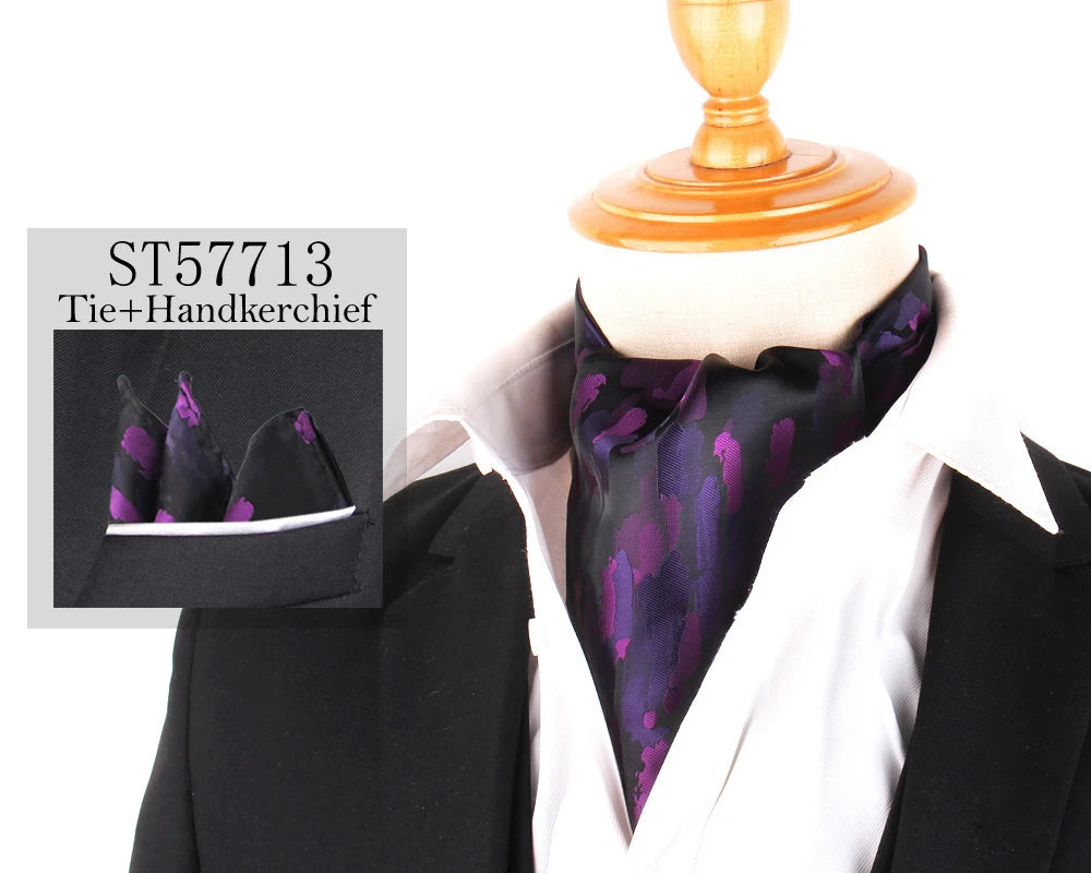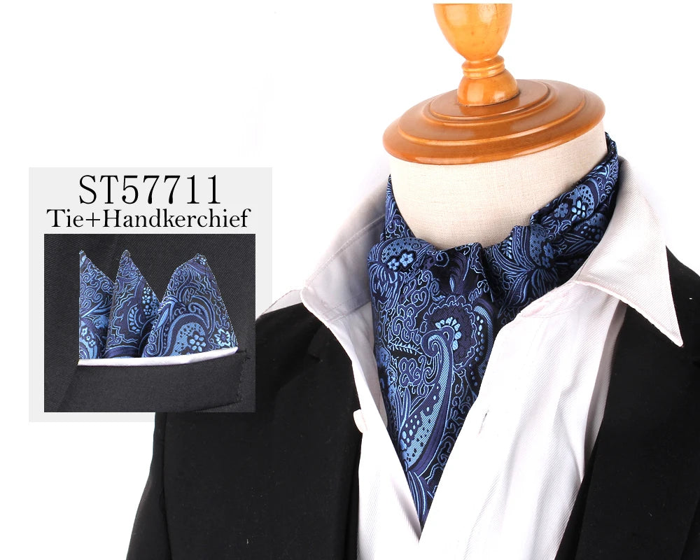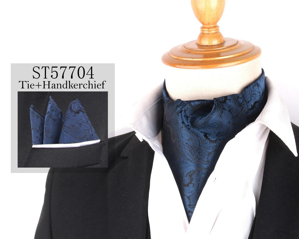 Men's Tie and Pocket Square Set Cravat Ascot Scrunch Polyester Soft Paisley Neck Tie Handkerchief Set