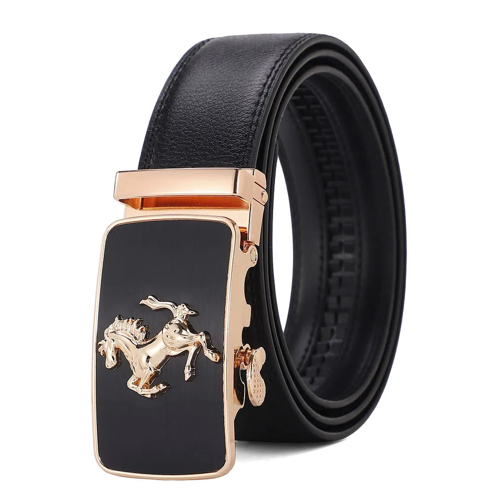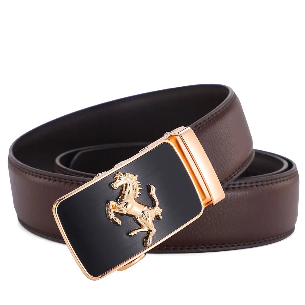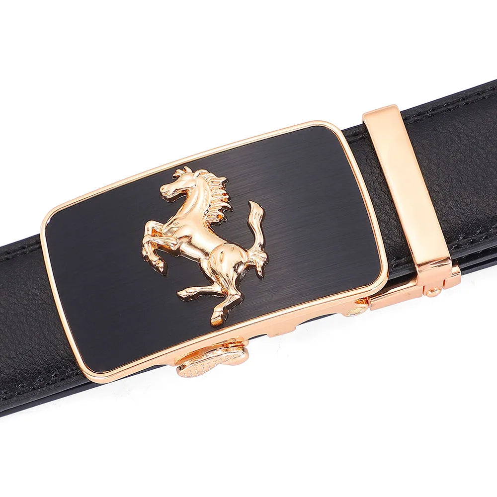 Men's Luxury High Quality Fashion Belt With Automatic Buckle Gold Horse Pendent
