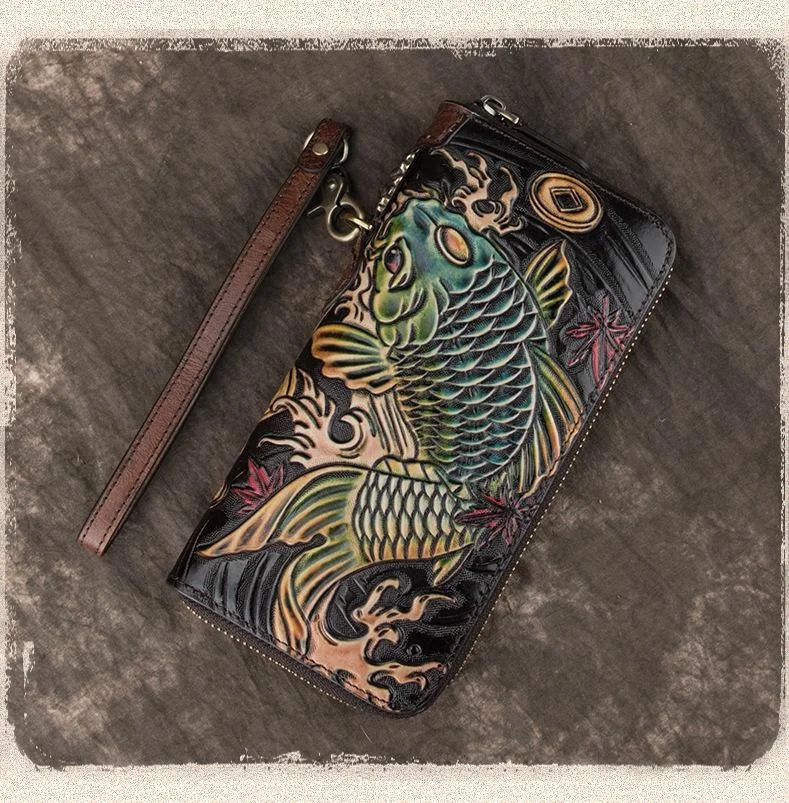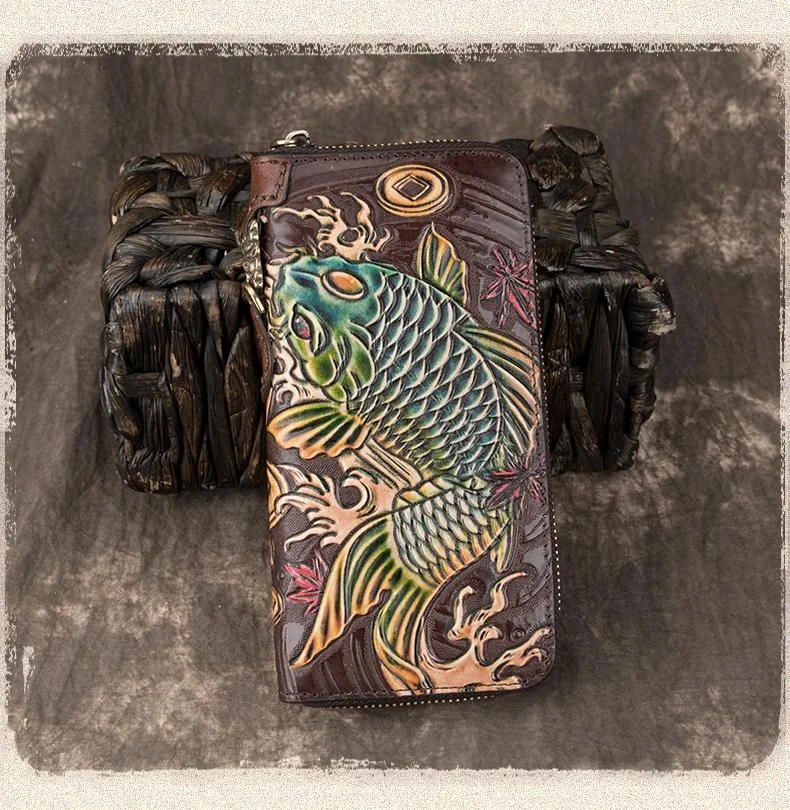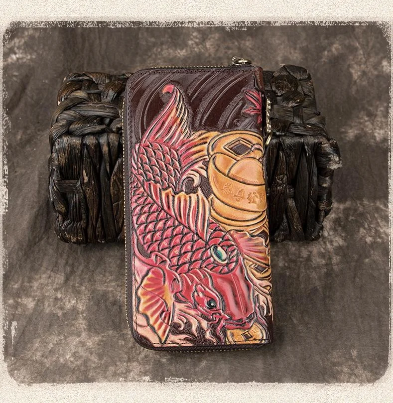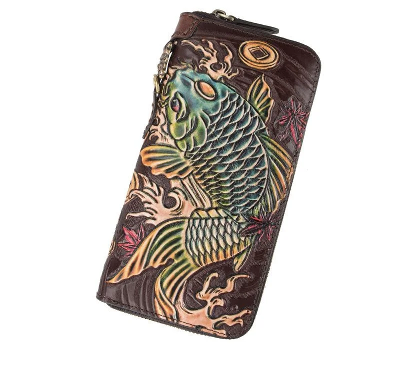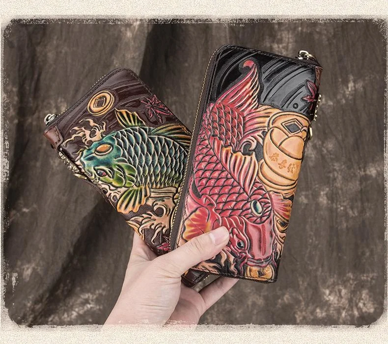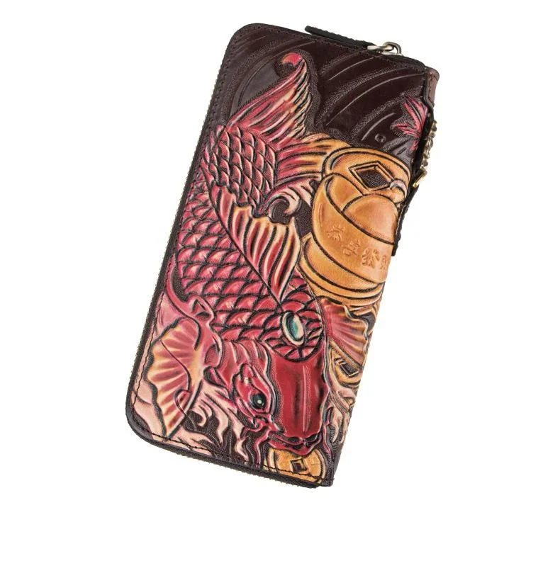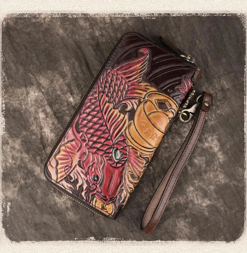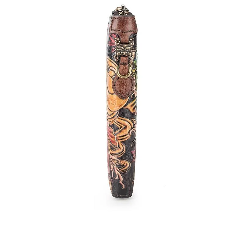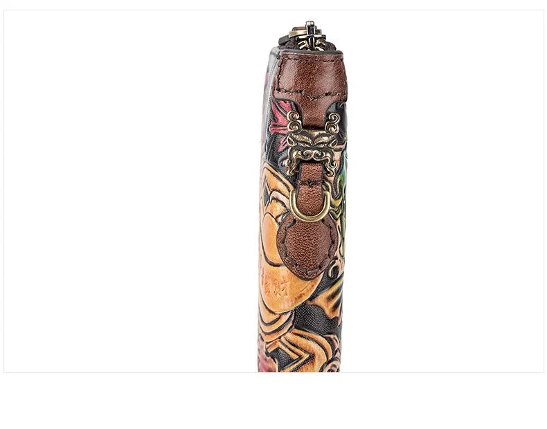 Luxury Vintage New Retro Handmade Embossed Genuine Leather Long Wallet