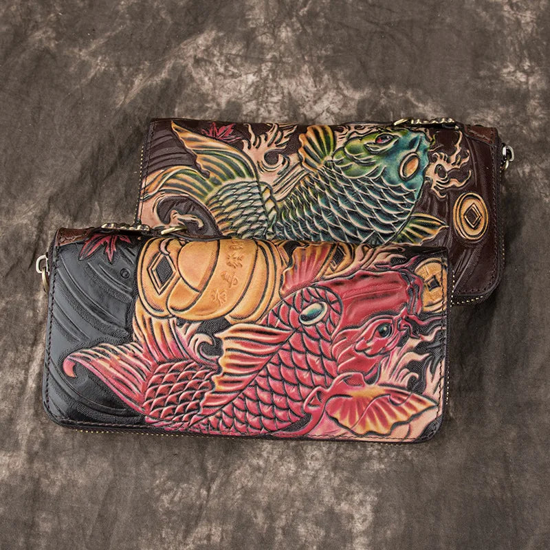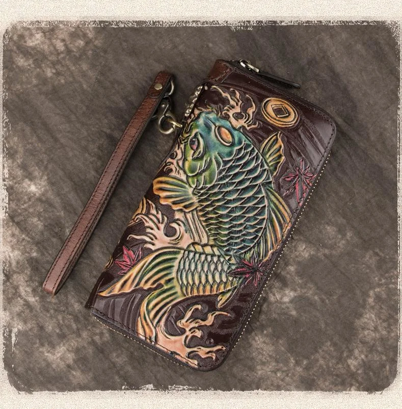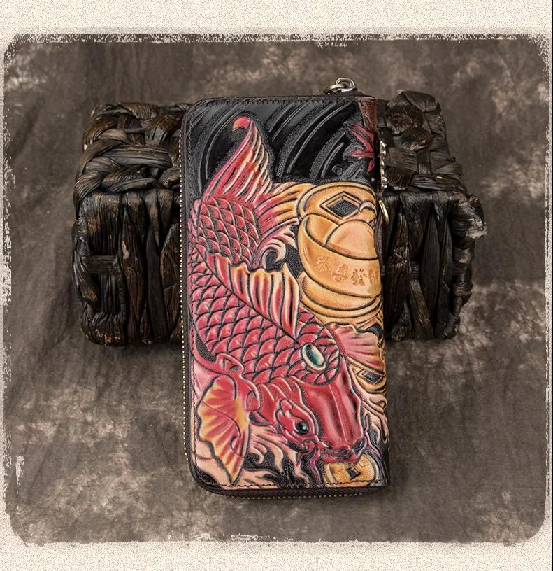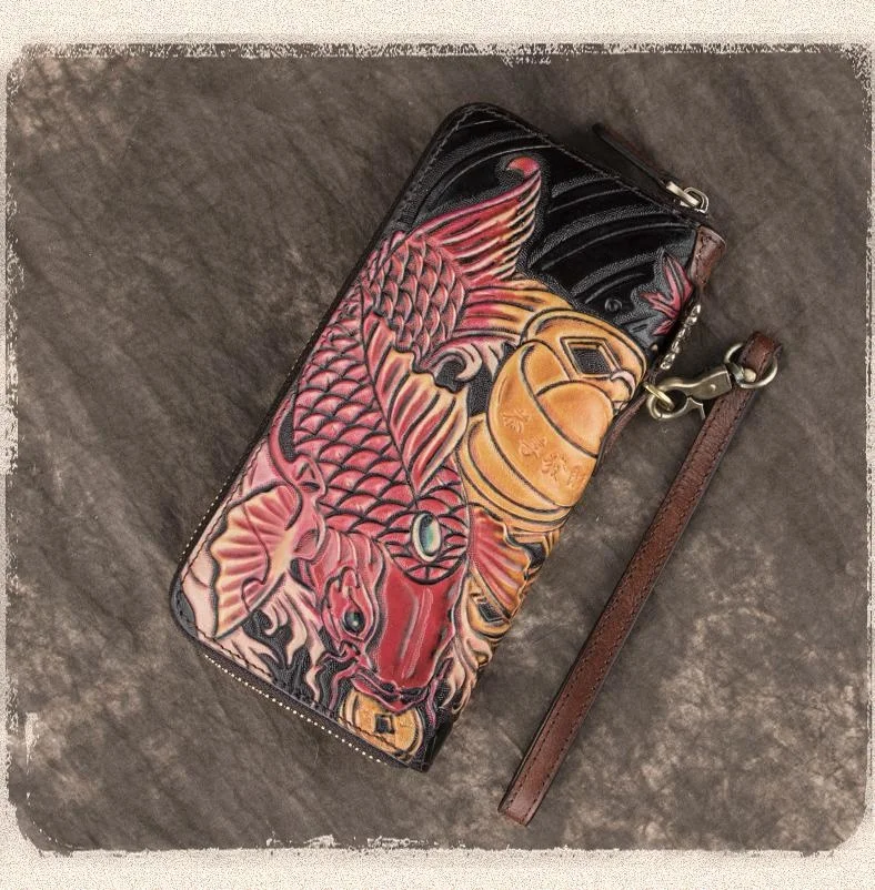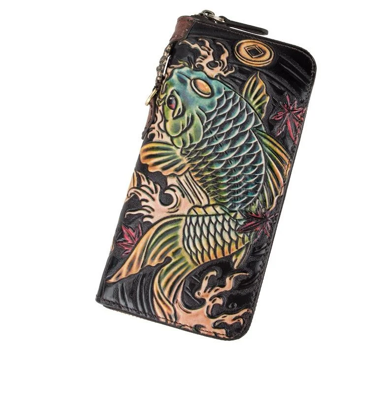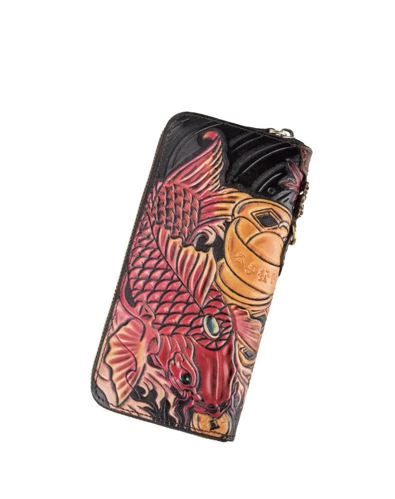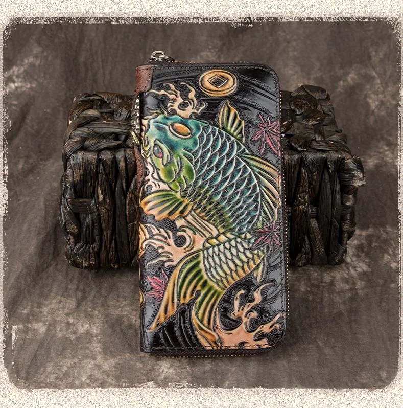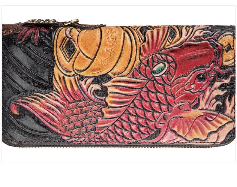 Luxury Vintage New Retro Handmade Embossed Genuine Leather Long Wallet