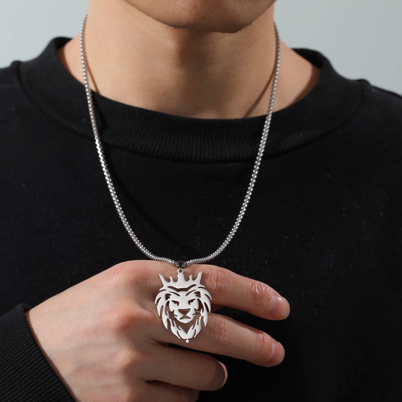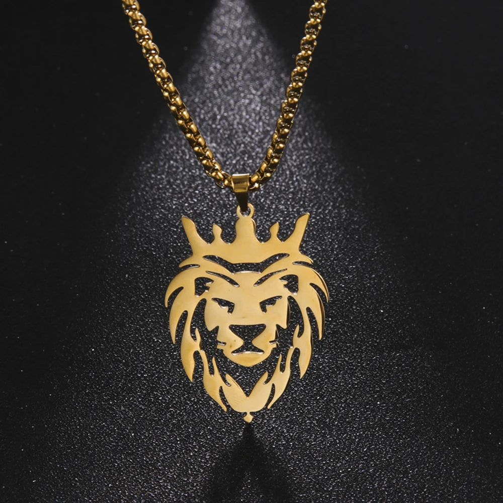 Stainless Steel Lion with King Crown Necklace