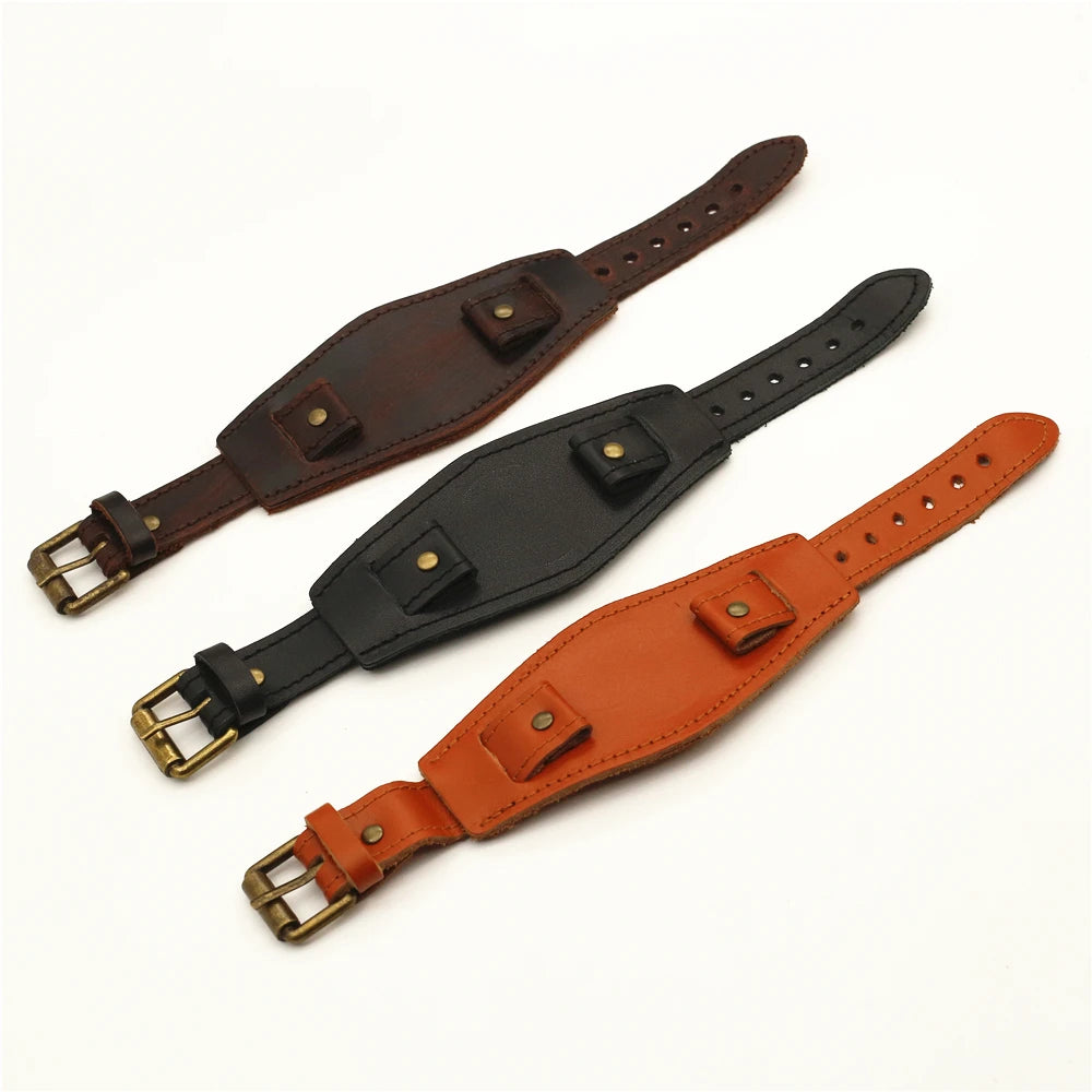 20mm Vintage Solid Black/Brown Genuine Leather Watchband