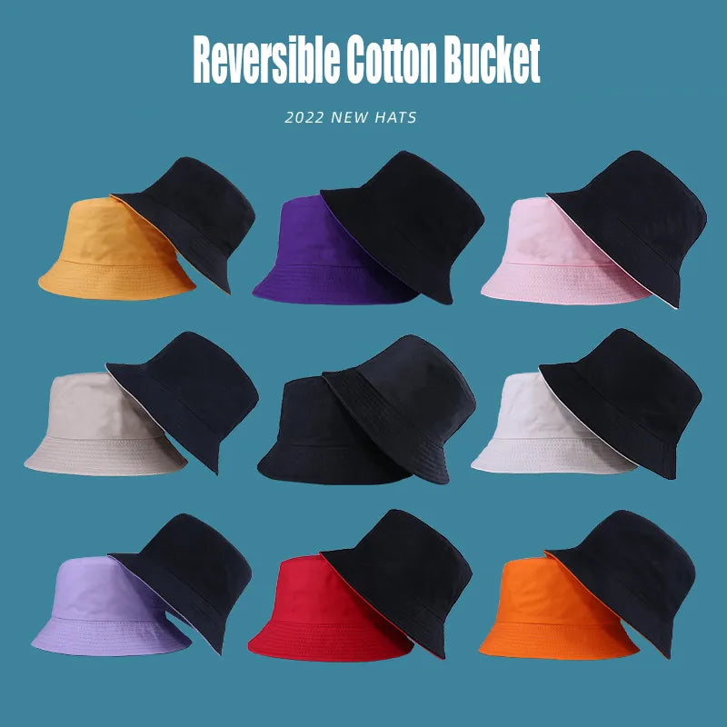 Reversible Cotton Bucket Hat Two Side Wear Unisex Simple Bob Cap Hip Hop Gorros Men Women Panama Cap Beach Fishing Boonie Sunhat
