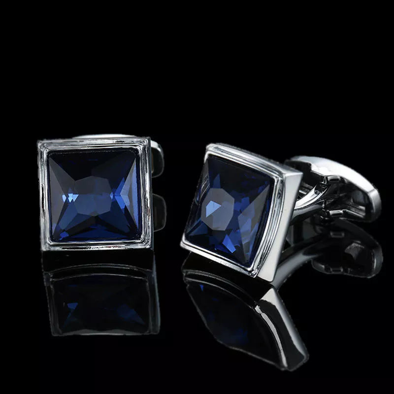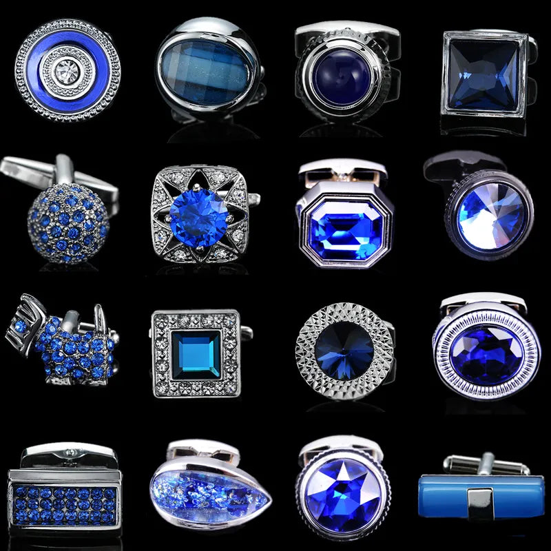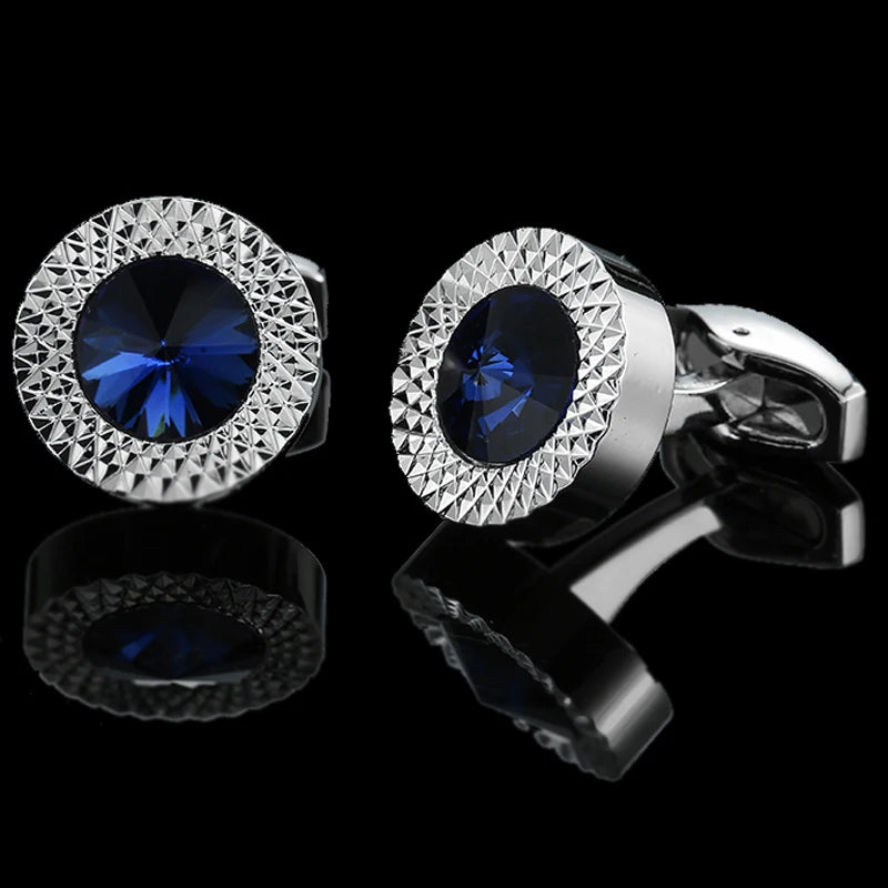 High quality brass hand inlaid Blue Crystal Zircon Cufflinks