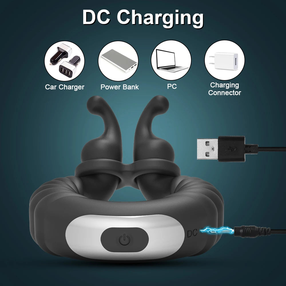 【10 vibrations Modes & Multiple Stimulation】- Vibrating Cock Ring is built-in dual motor design, has ten different vibration modes, can bring intense vibrating stimulation. Press the button and share powerful vibrations with every thrust, so that you and your partner can enjoy the most extreme passion experience.