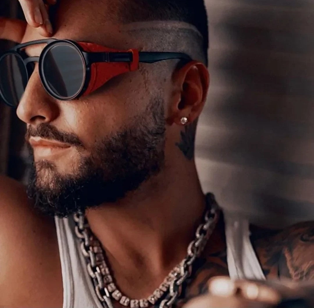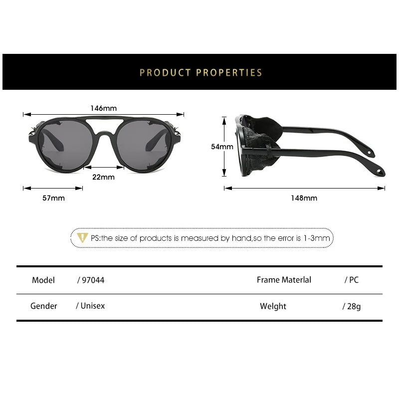 Vintage Round Steampunk Sunglasses Retro With Leather Rivet Wrap